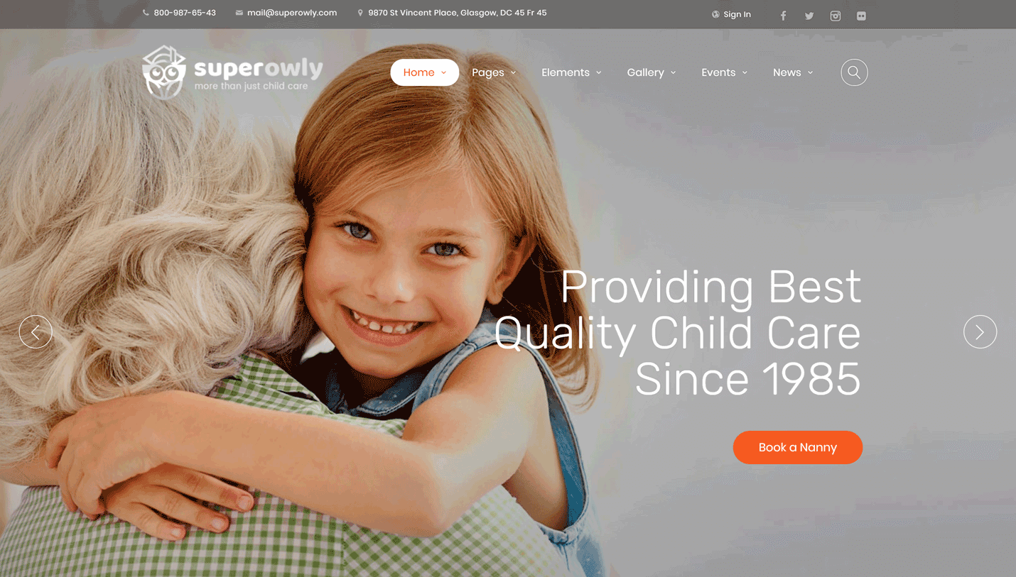 The theme features an easily customizable design built with Elementor page builder. It also includes lots of inner-page layouts for creating useful pages to showcase your special programs, upcoming events, image galleries, and much more.