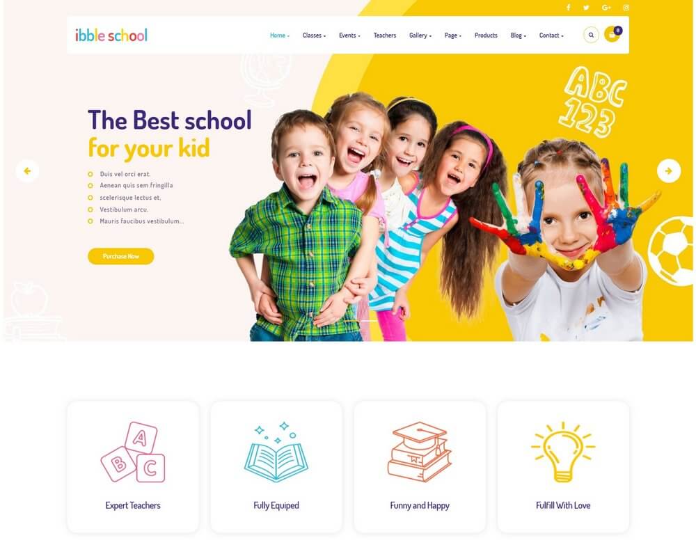 Ibble is a colorful and playful kids WordPress theme designed for making educational websites for schools and kindergartens. The theme comes with 4 easily customizable homepage layouts featuring 8 unique page designs.