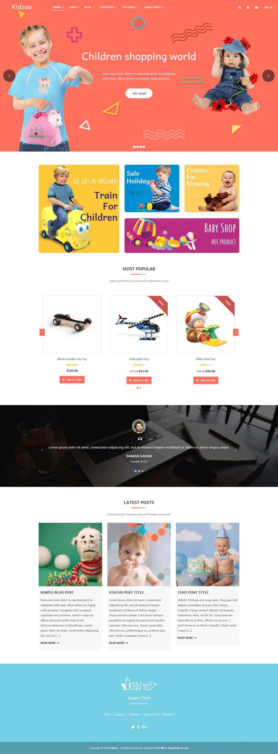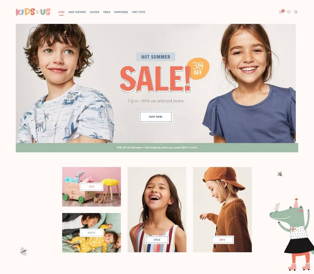 This WordPress theme for kids and children also has some useful ecommerce features to enhance your shop.