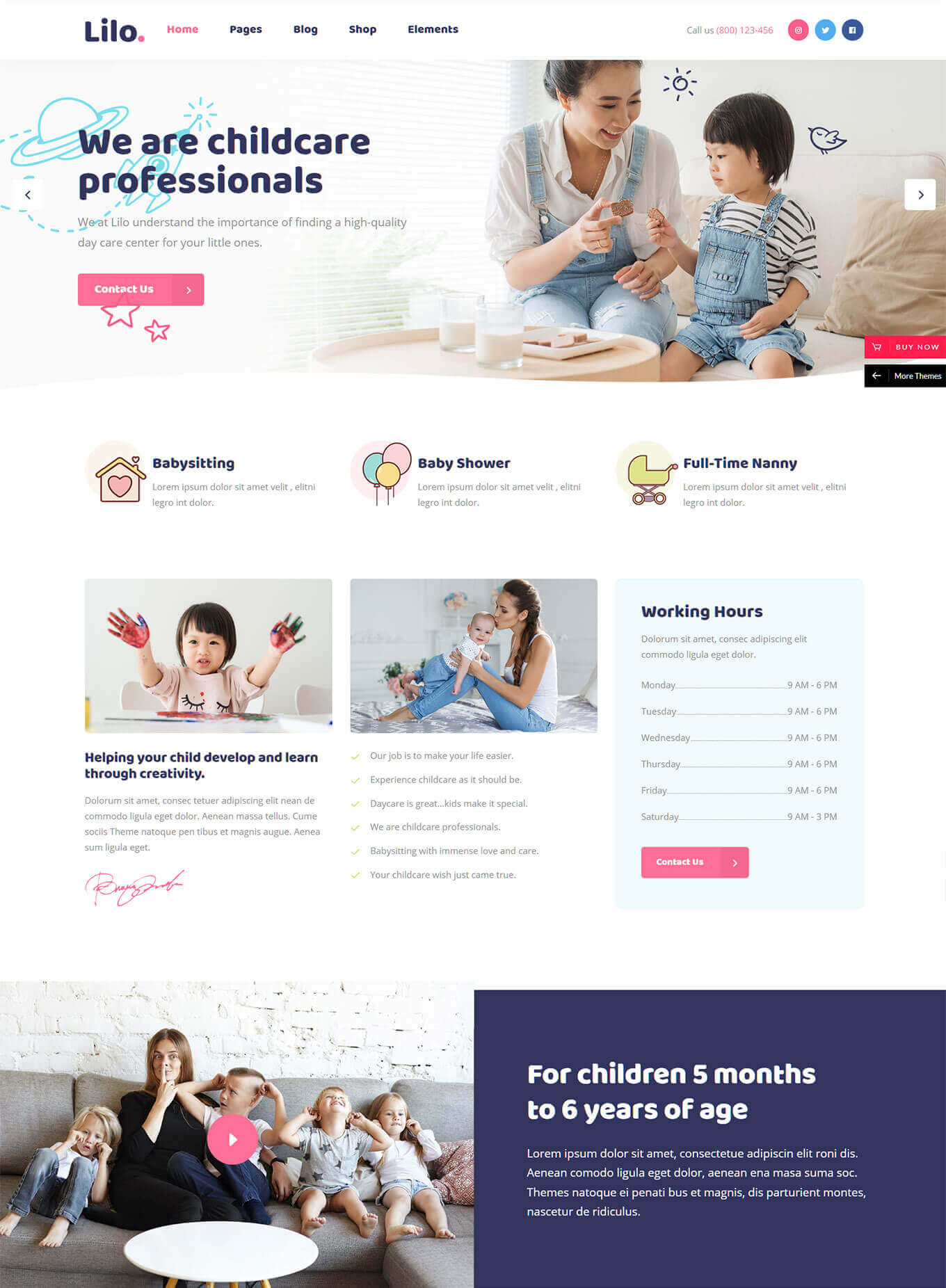 Lilo – WordPress Theme for Babysitting and Childcare Websites