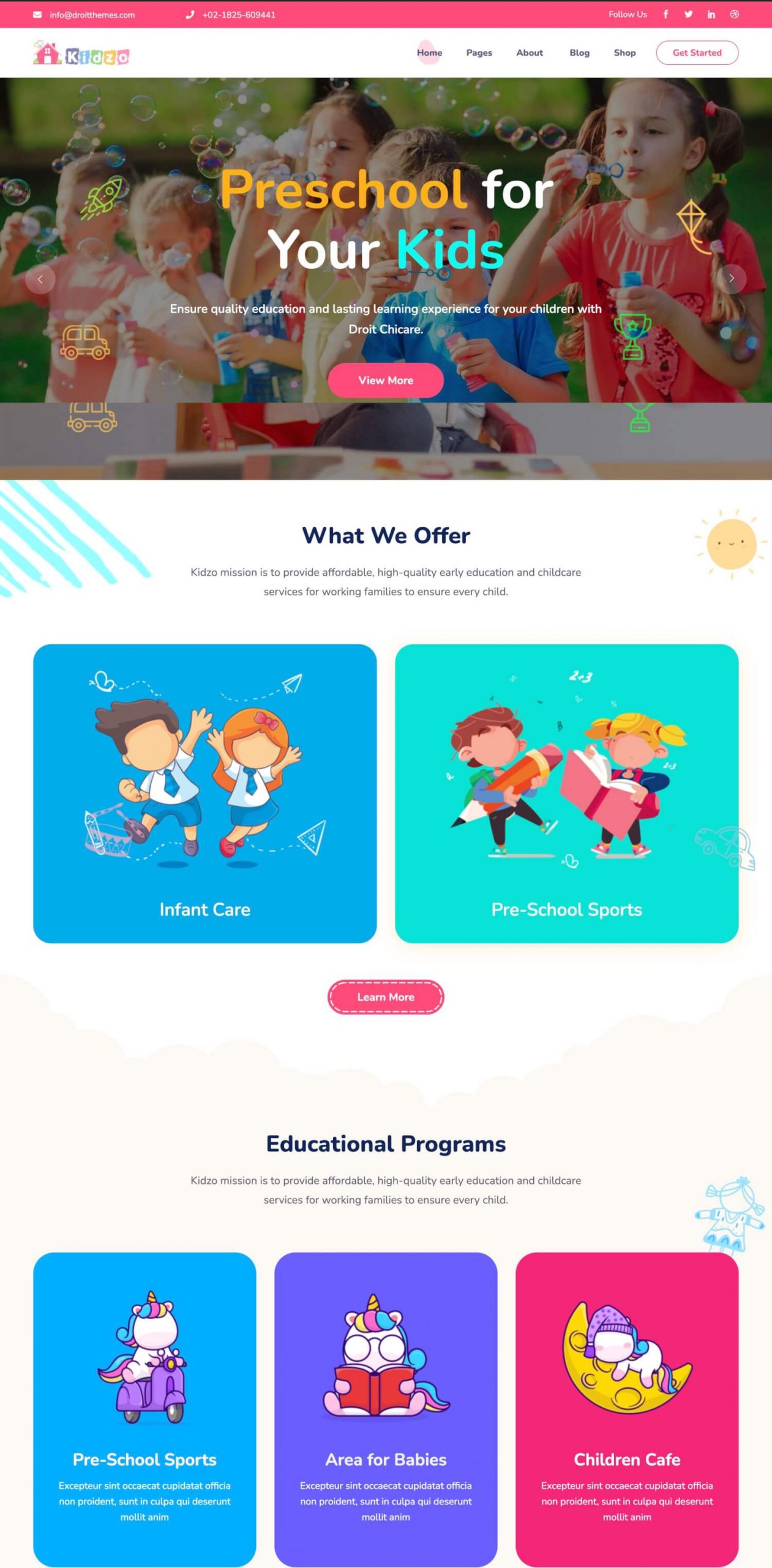 If you want a WordPress theme that really stands out, check out Kidzo, a perfect option that will help you launch the best kids’ education, learning, schooling, and playful activities website in no time at all.