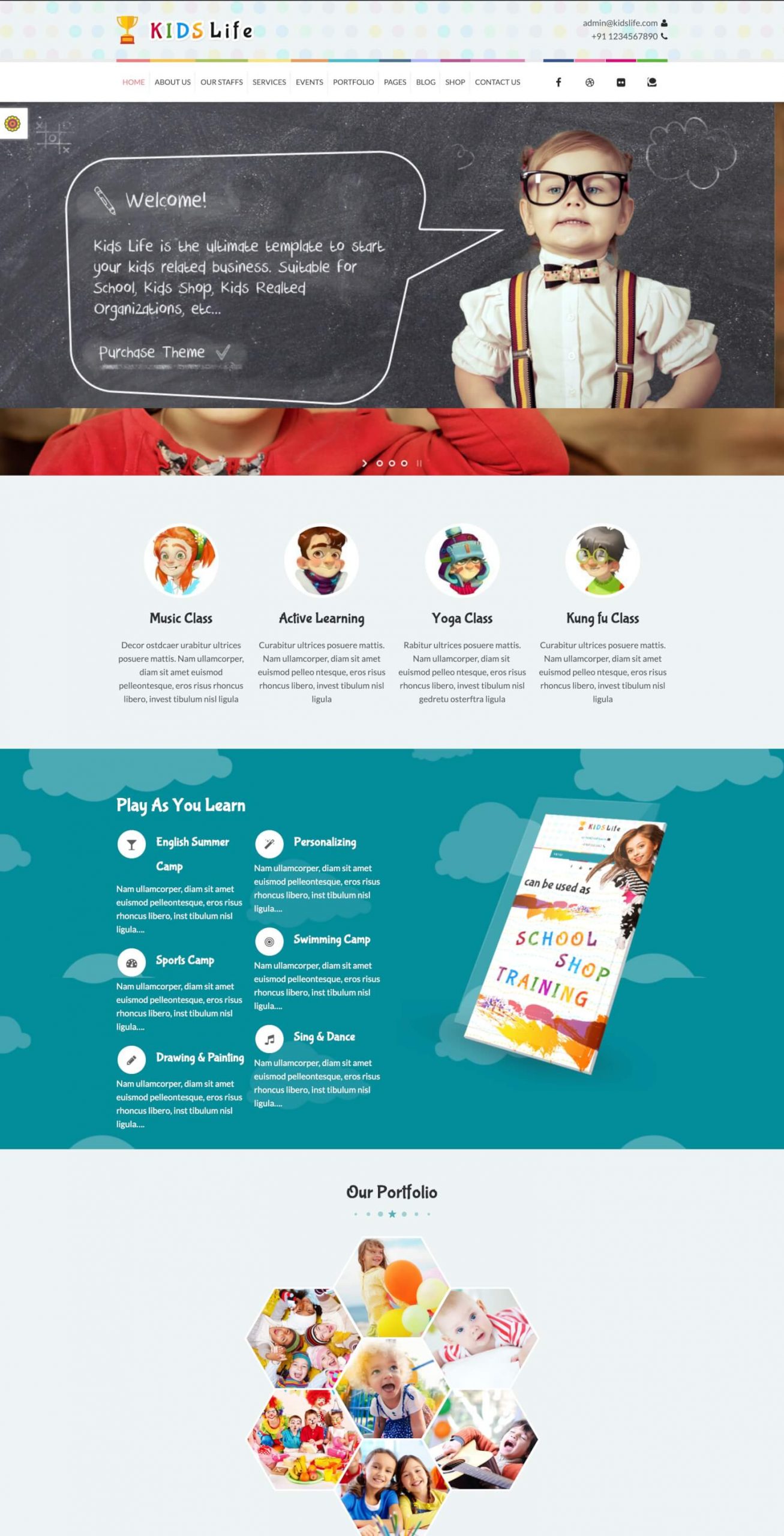 Kids Education is another good free option for creating a website to promote your school or educational facilities as well as publish eLearning content online. In fact, any sort of project related to kids and children should be a good use for the free Kids Education theme.