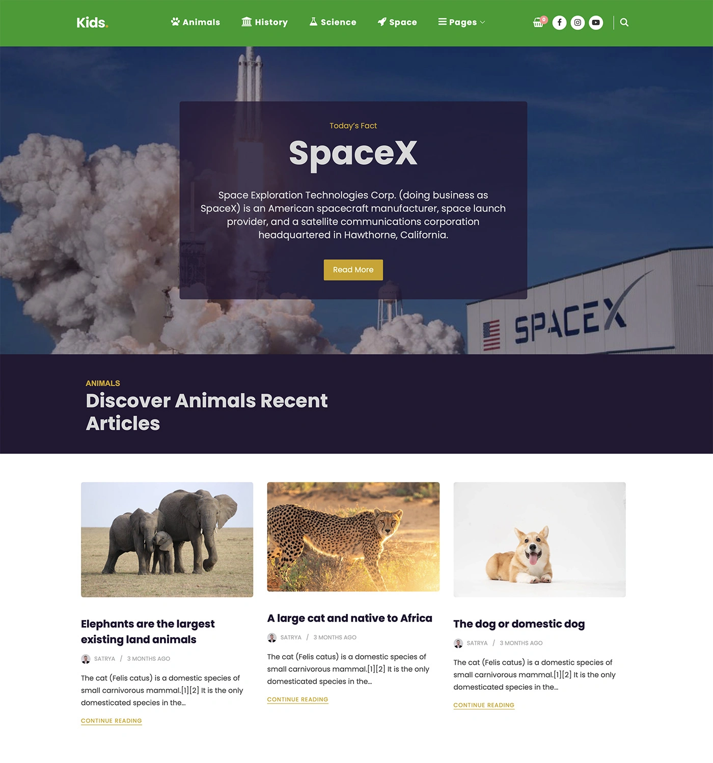Kids is one of the most stylish options in this collection of the best WordPress themes for kids and children. No matter what type of website you’re building, if it’s at all related to children and kids, then this theme could be a great choice.