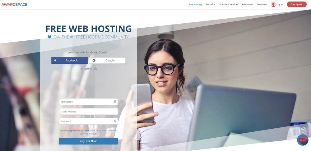 AwarSpace is another reliable free hosting site you can use to make any type of website without forced ads.